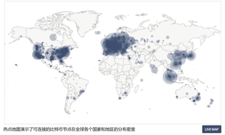 比特币网络节点的全球分布地图 bitnodes